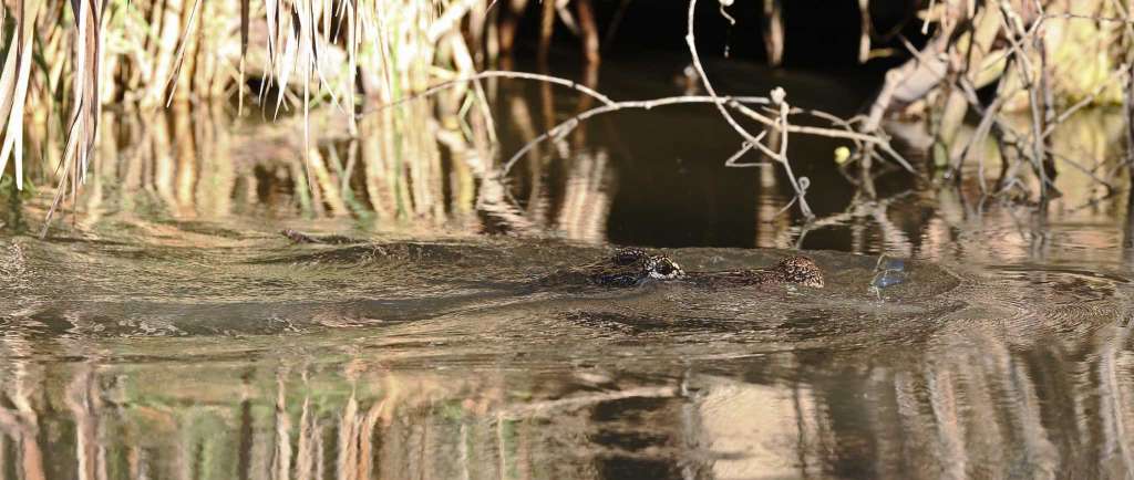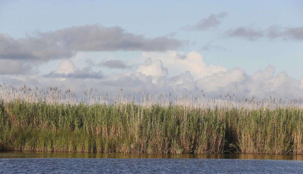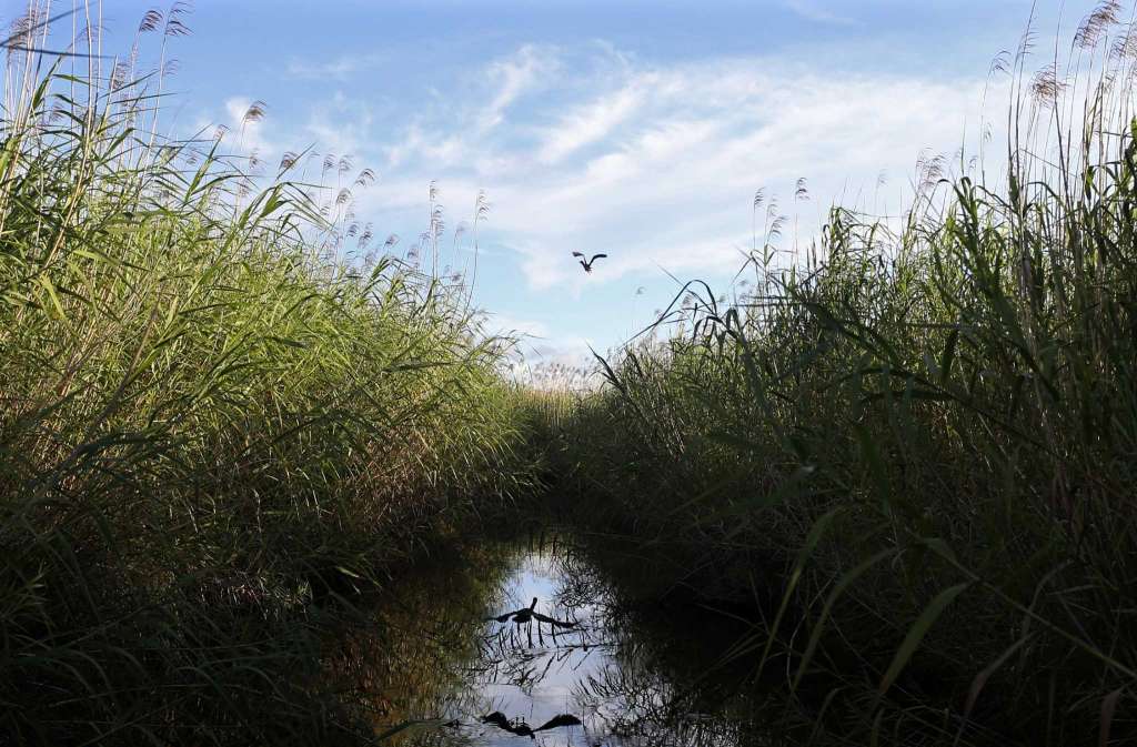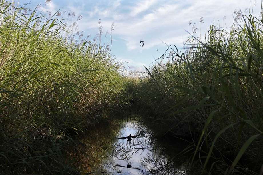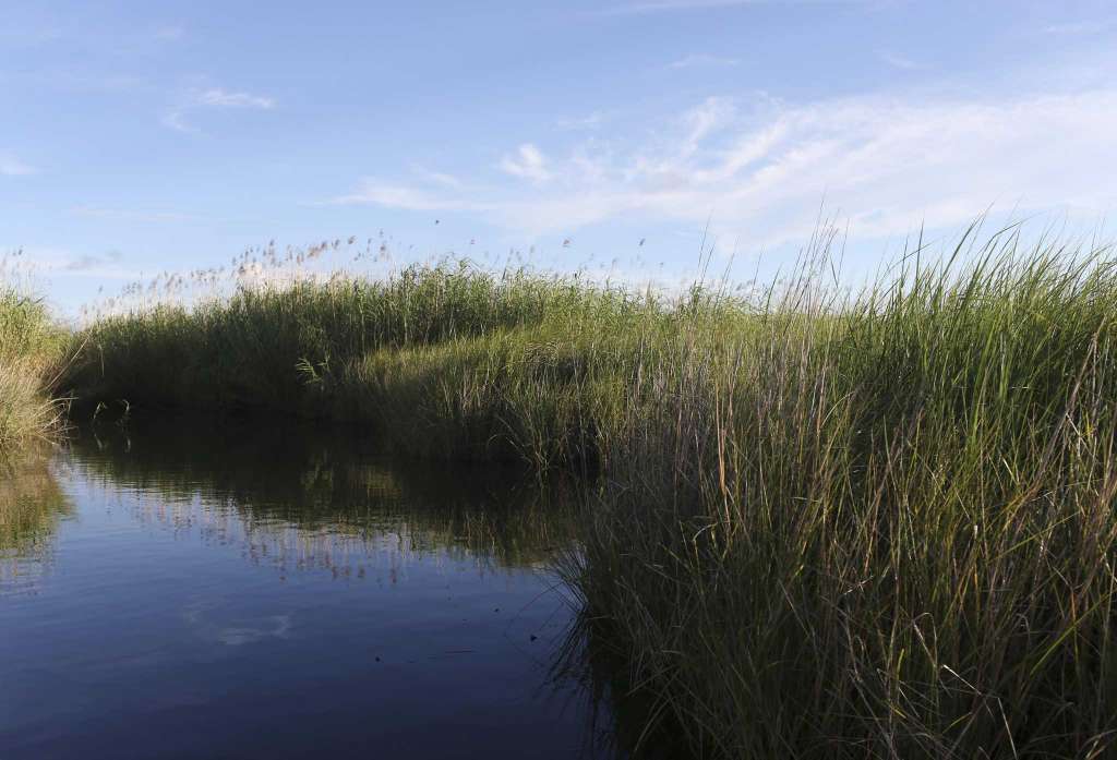The delta supports a hugely productive ecosystem. The reeds are full of birds both nesting and stopping by. Alligators patrol the river channels. The muddy water in the ponds, which Gill calls “baylets,” churn with small fish.