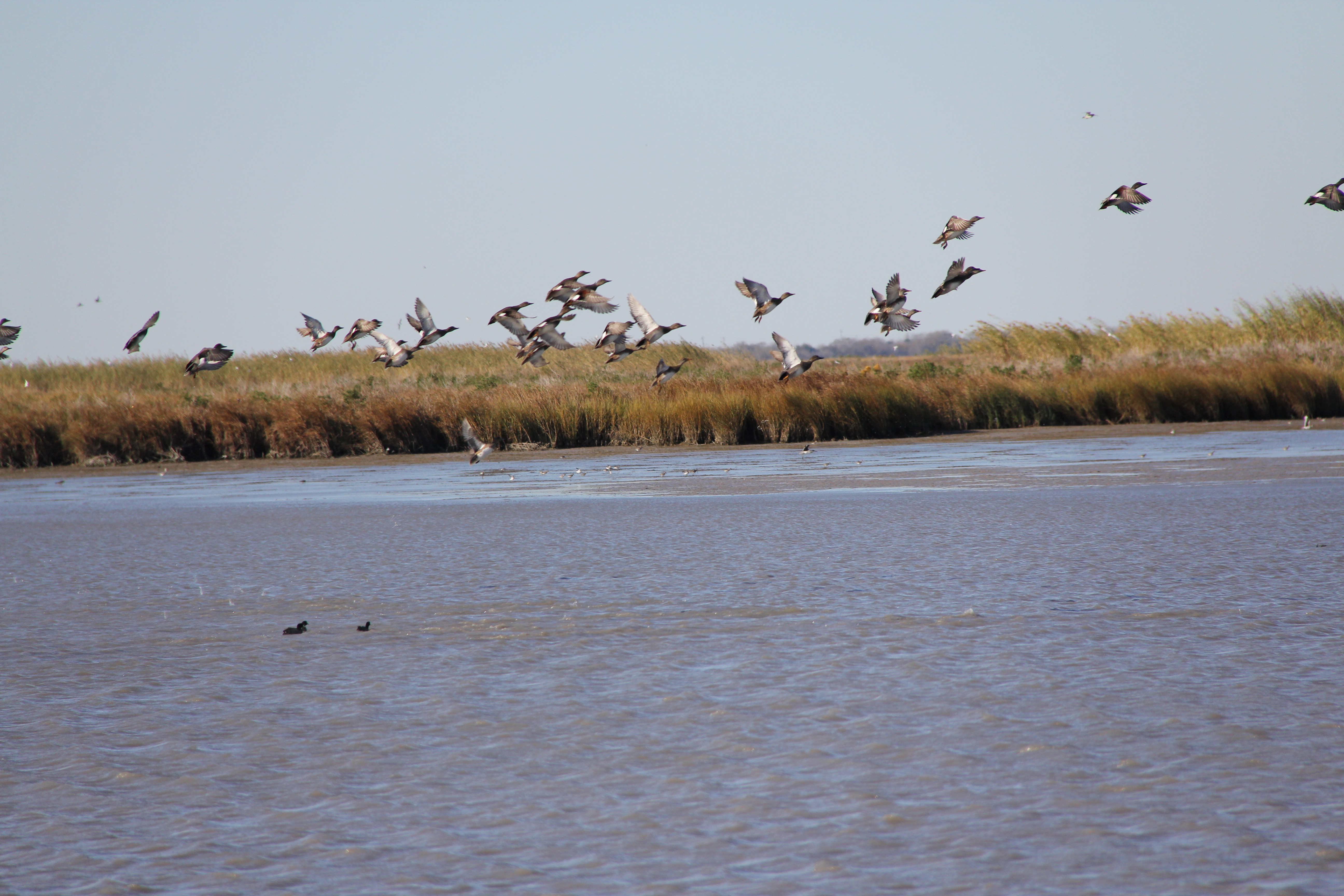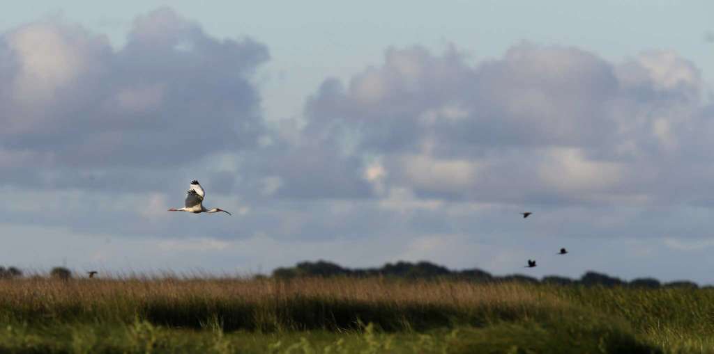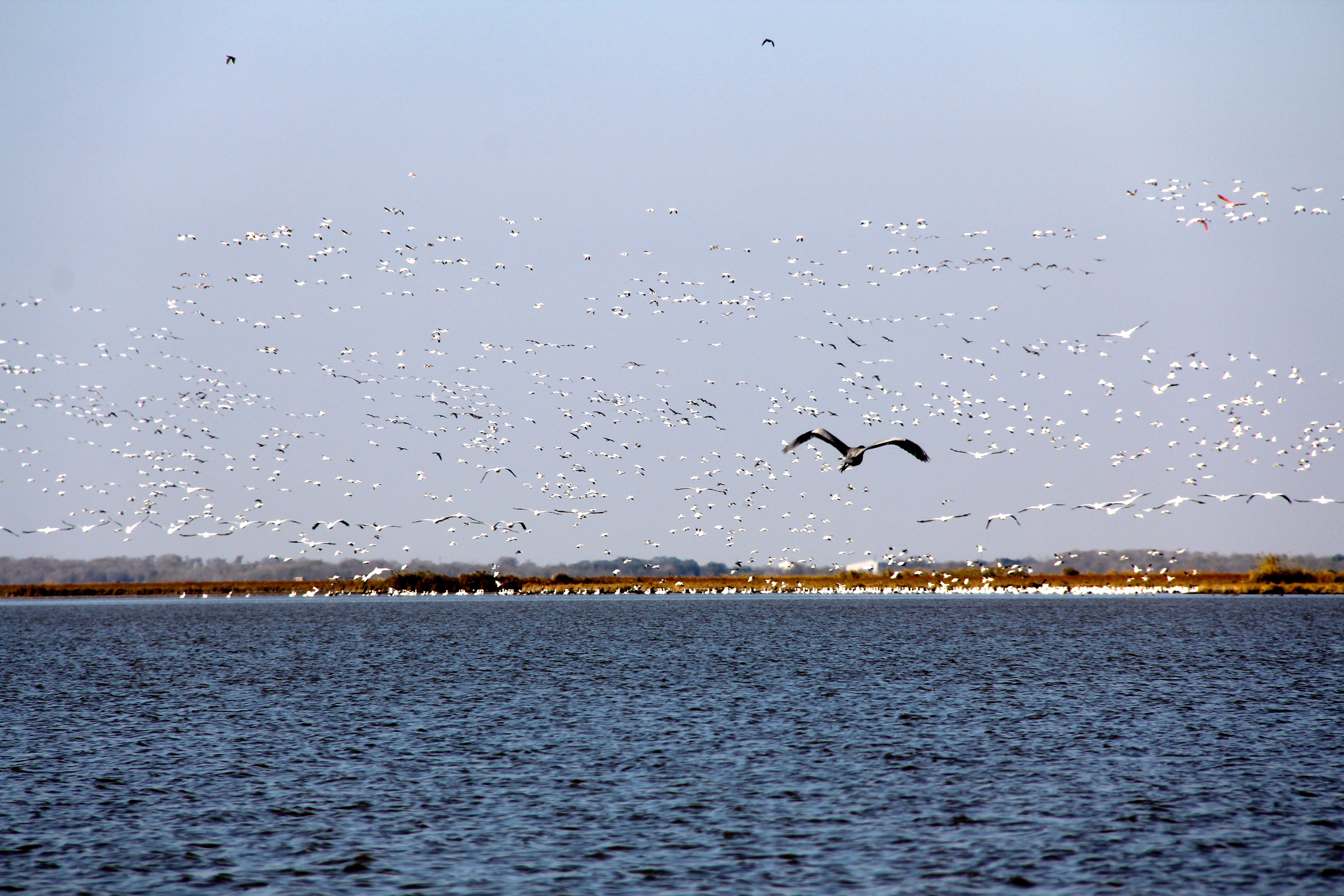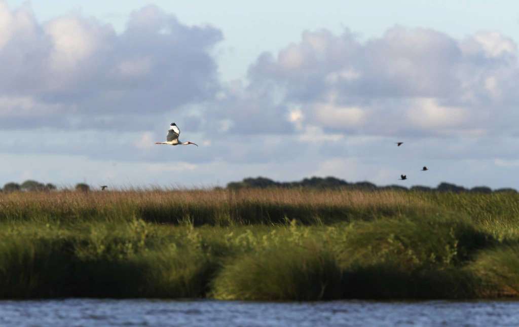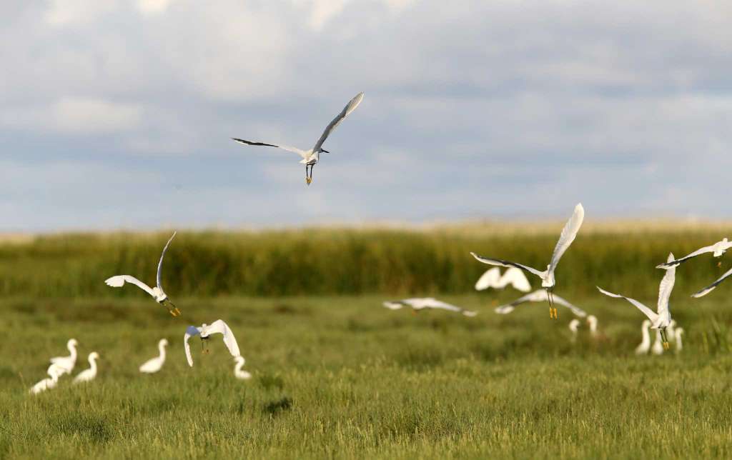 GUADALUPE DELTA — The airboat glides over water and grasses. Its roar startles flocks of white egrets and dark ibises. They raise their spindly legs and take off from the delta with great flaps of their wide wings.