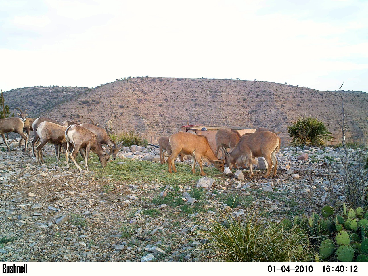 This is a bogus charge, based on Circle Ranch pictures of aoudad and sheep peacefully sharing water—and of other species using that same water or nearby water.We have reviewed 5,000 photos per month for 12-years at 13-camera points. All of this evidence has been offered to BRI and TPWD; thousands of photos are posted on this blog. Those who propose aoudad eradication because aoudad prevent other animals from drinking should share their proof.