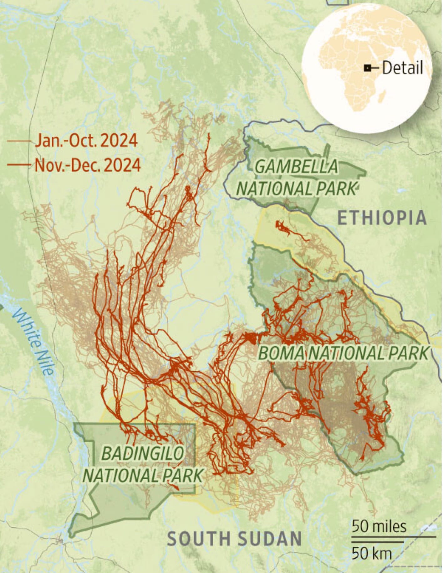 The Murle are so intimidating that other ethnic groups keep their distance to the extent possible. That has created a sort of no-man’s-land both in the parks and the places in between.