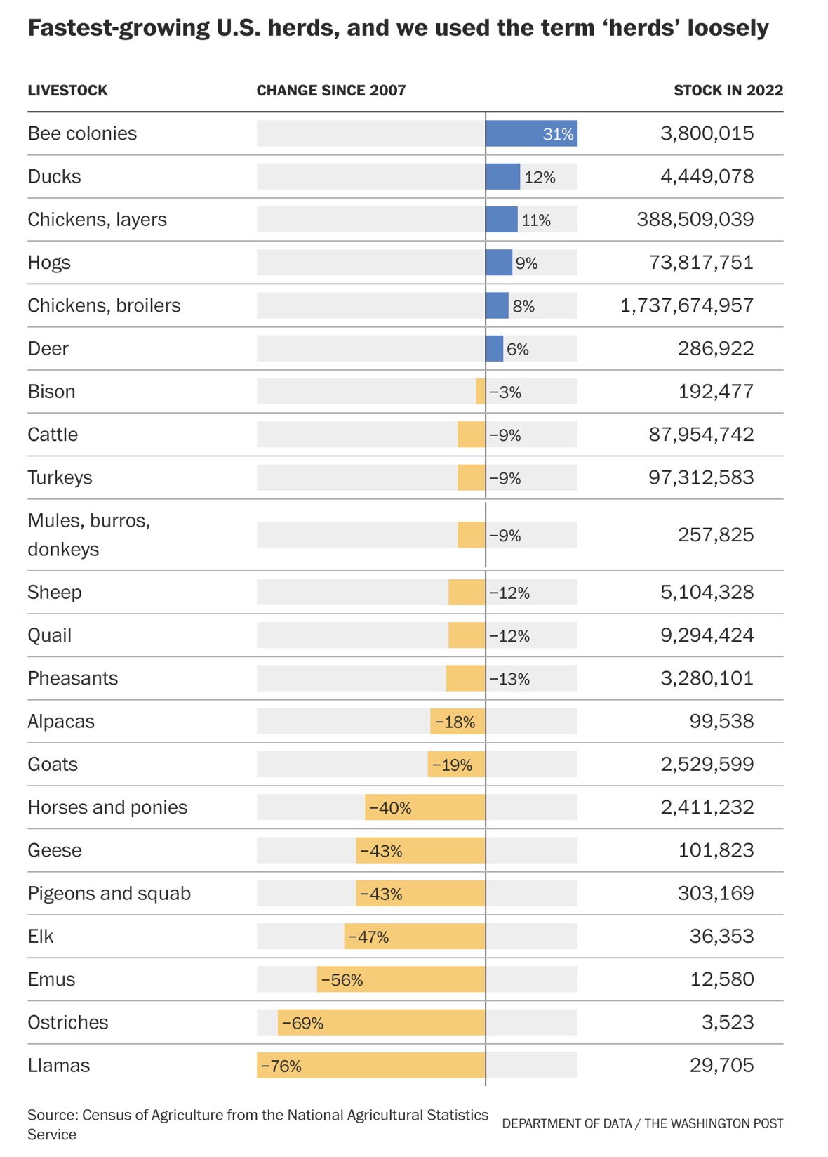 After almost two decades of relentless colony collapse coverage and years of grieving suspiciously clean windshields, we were stunned to run the numbers on the new Census of Agriculture (otherwise known as that wonderful time every five years where the government counts all the llamas): America’s honeybee population has rocketed to an all-time high.