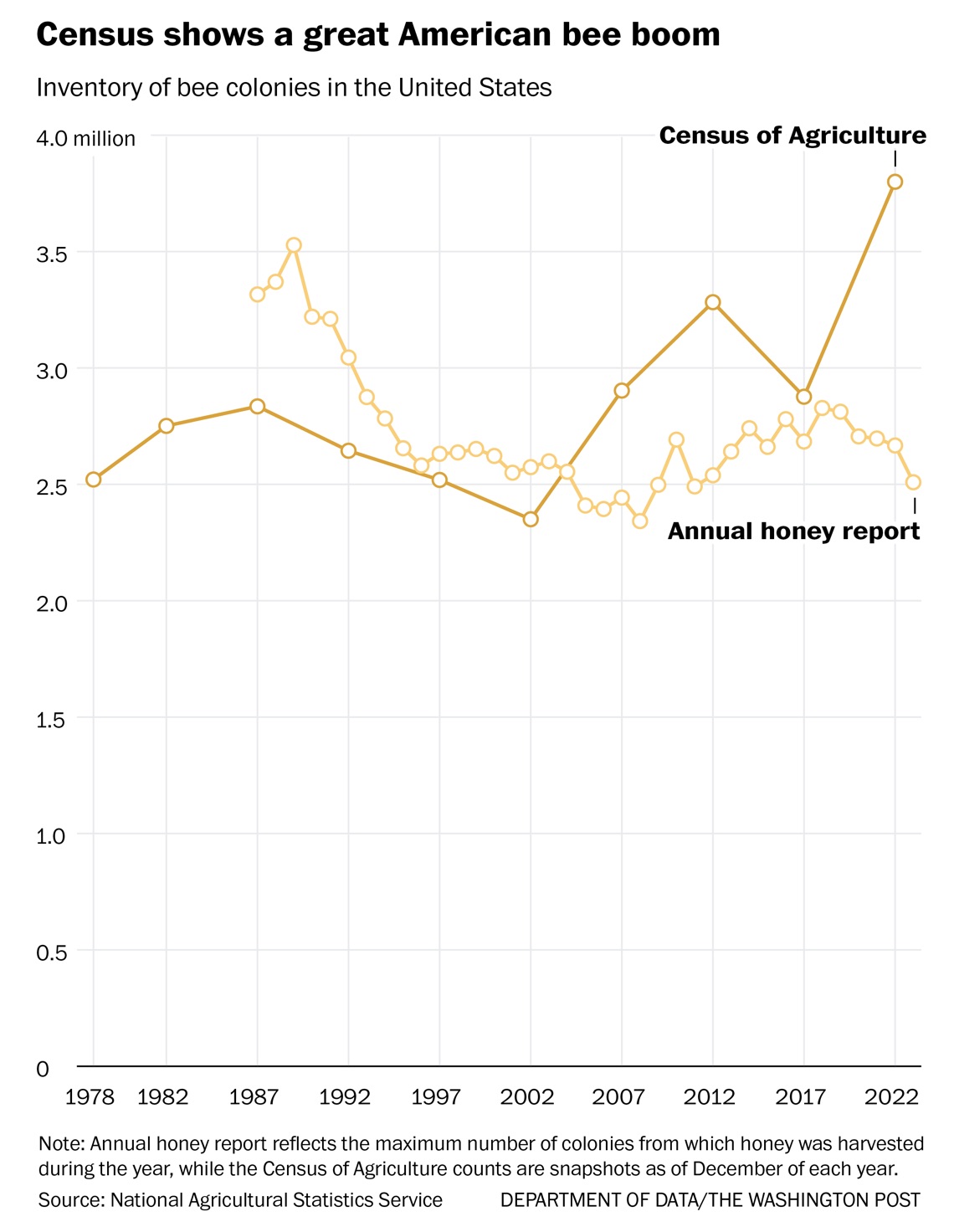 Hidden deep within the latest Census of Agriculture lurks a shocking fact: The United States has more bee colonies than ever before. Is it true? What happened?