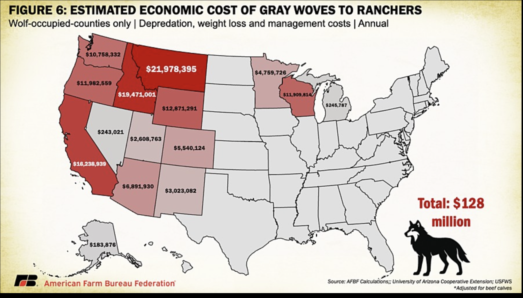 WHY are wolves and lions attacking livestock (cattle and sheep), and why are the forests burning faster than they are regenerating. It's the same kind of economically-driven indifference (ignorance?) we see that supports the continuation of catastrophic wildfires in the same western states we see on the American Farm Bureau Federation’s wolf map below.
